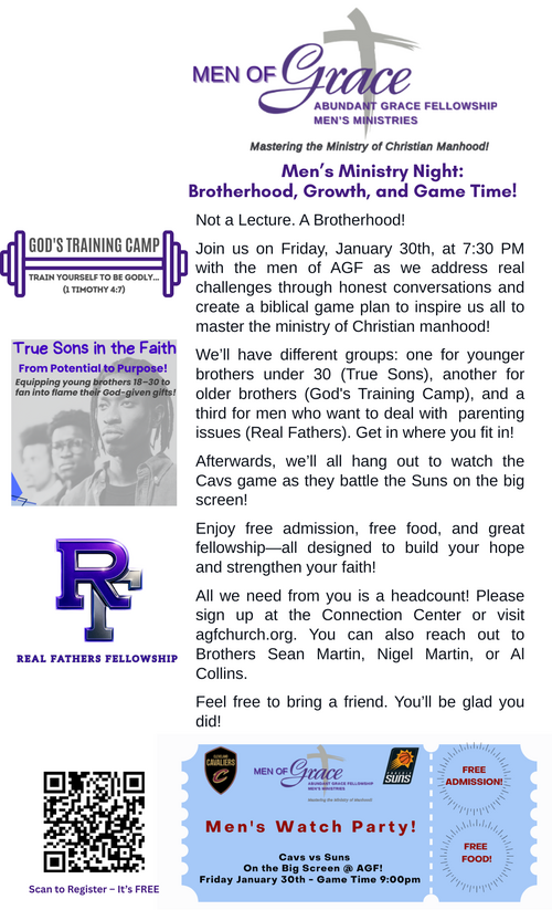 In the middle of the commotion and chaos of urban life, our Men's Ministry stands as a beacon of hope, calling unbelieving men to encounter the transformative love of Christ. Our mission is to walk alongside men on their spiritual journey, helping them foster a deeper connection with God.